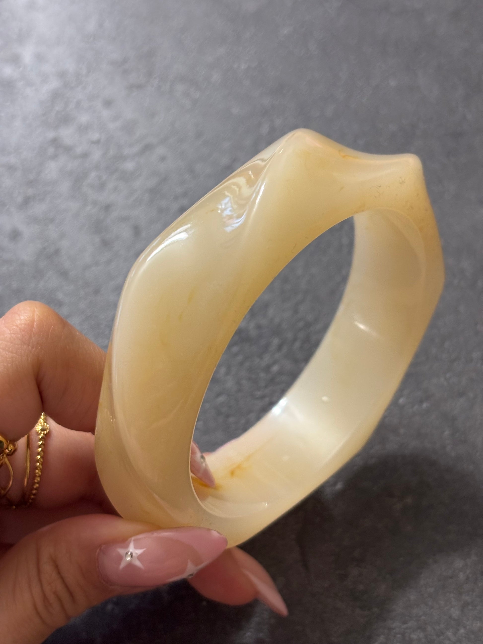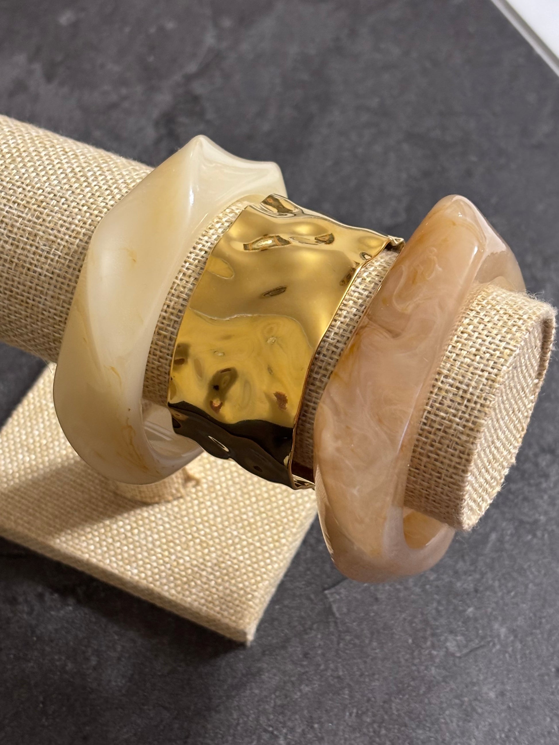 - a beige resin bangle (diameter of 6.5 cm, wrist circumference: approx. 20 cm)