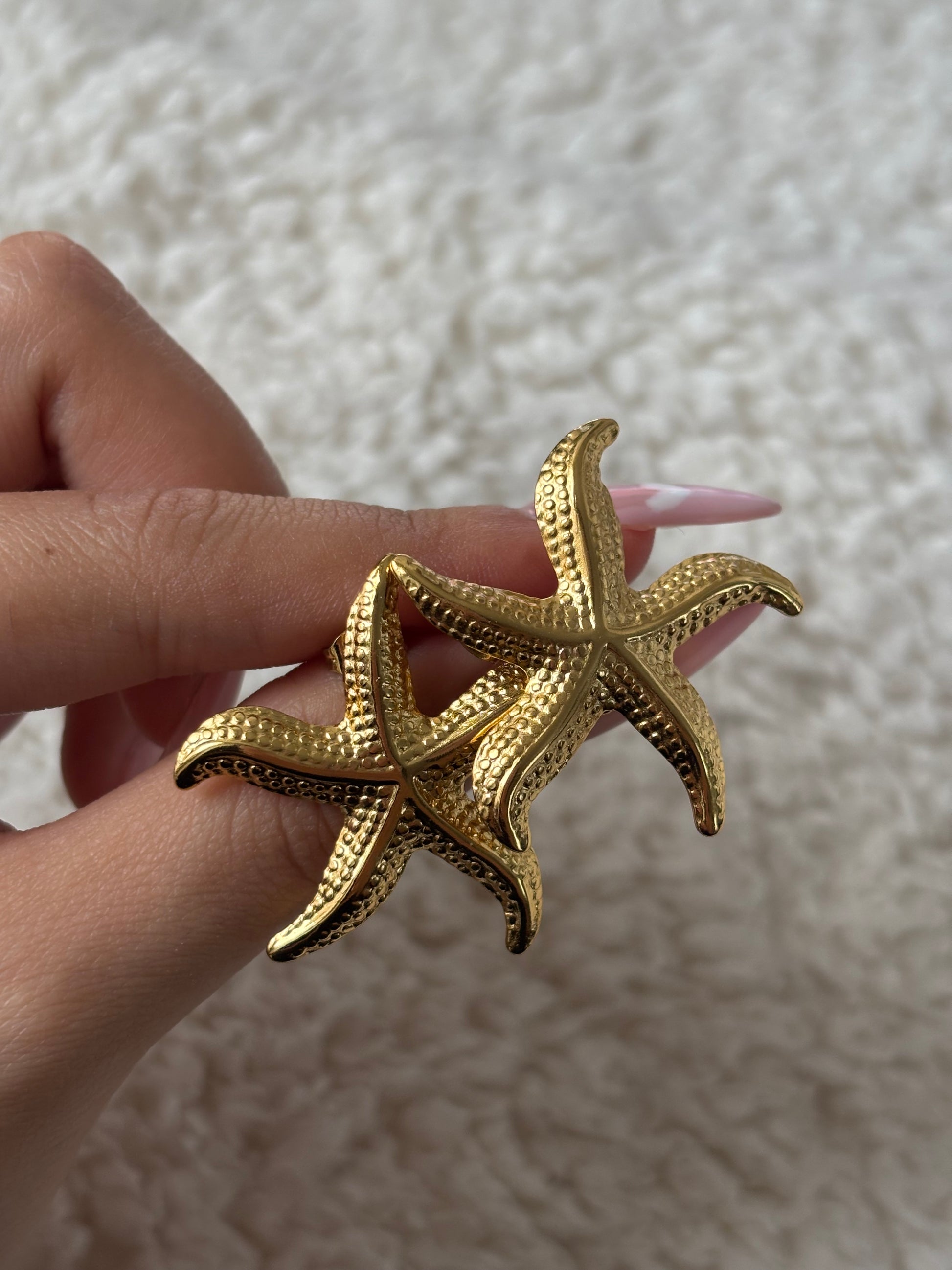 Mots clés : boucles d’oreilles, étoile de mer, doré, acier inoxydable