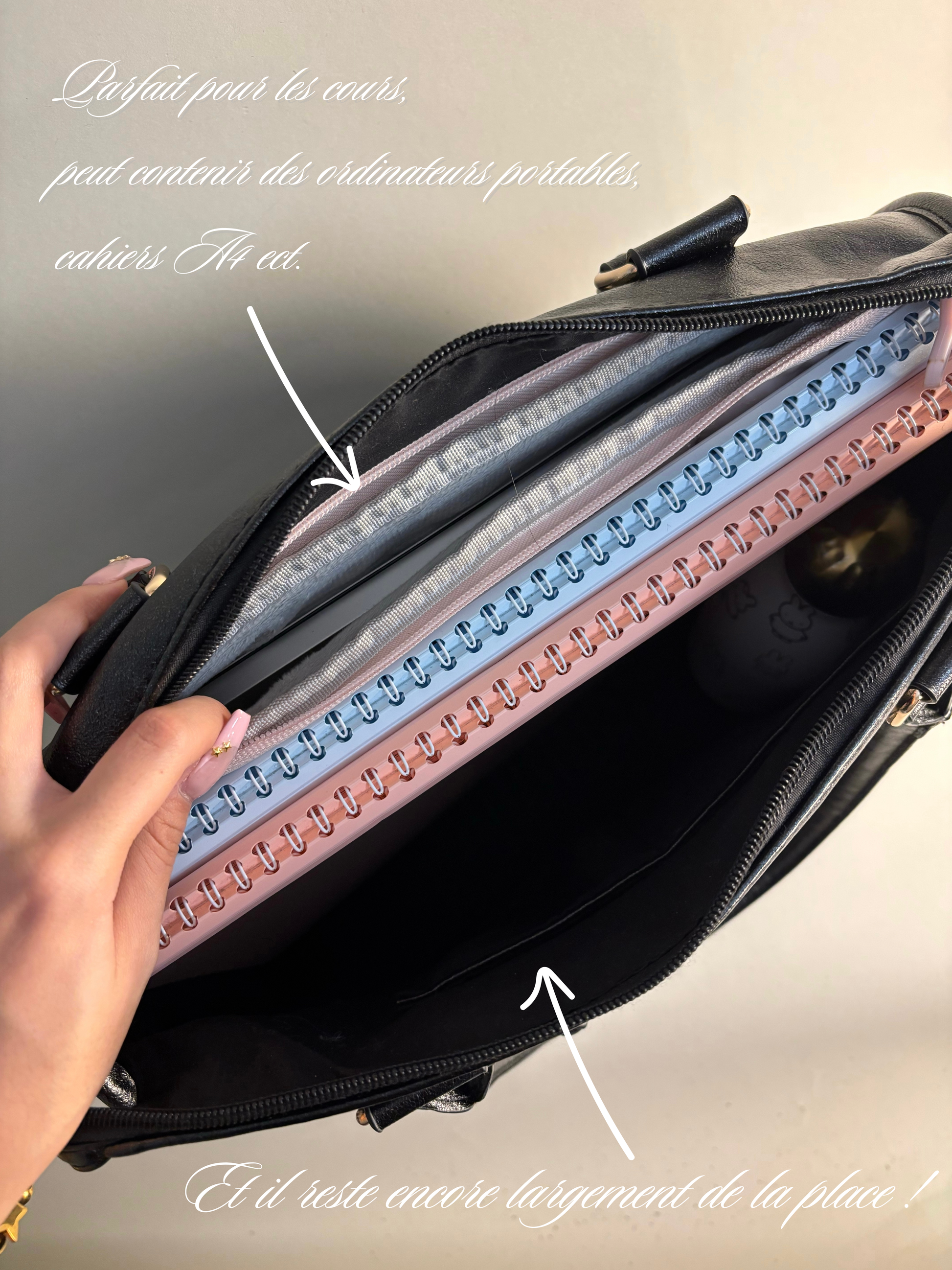- contient en tout 3 poches intérieures, et 2 poches extérieures