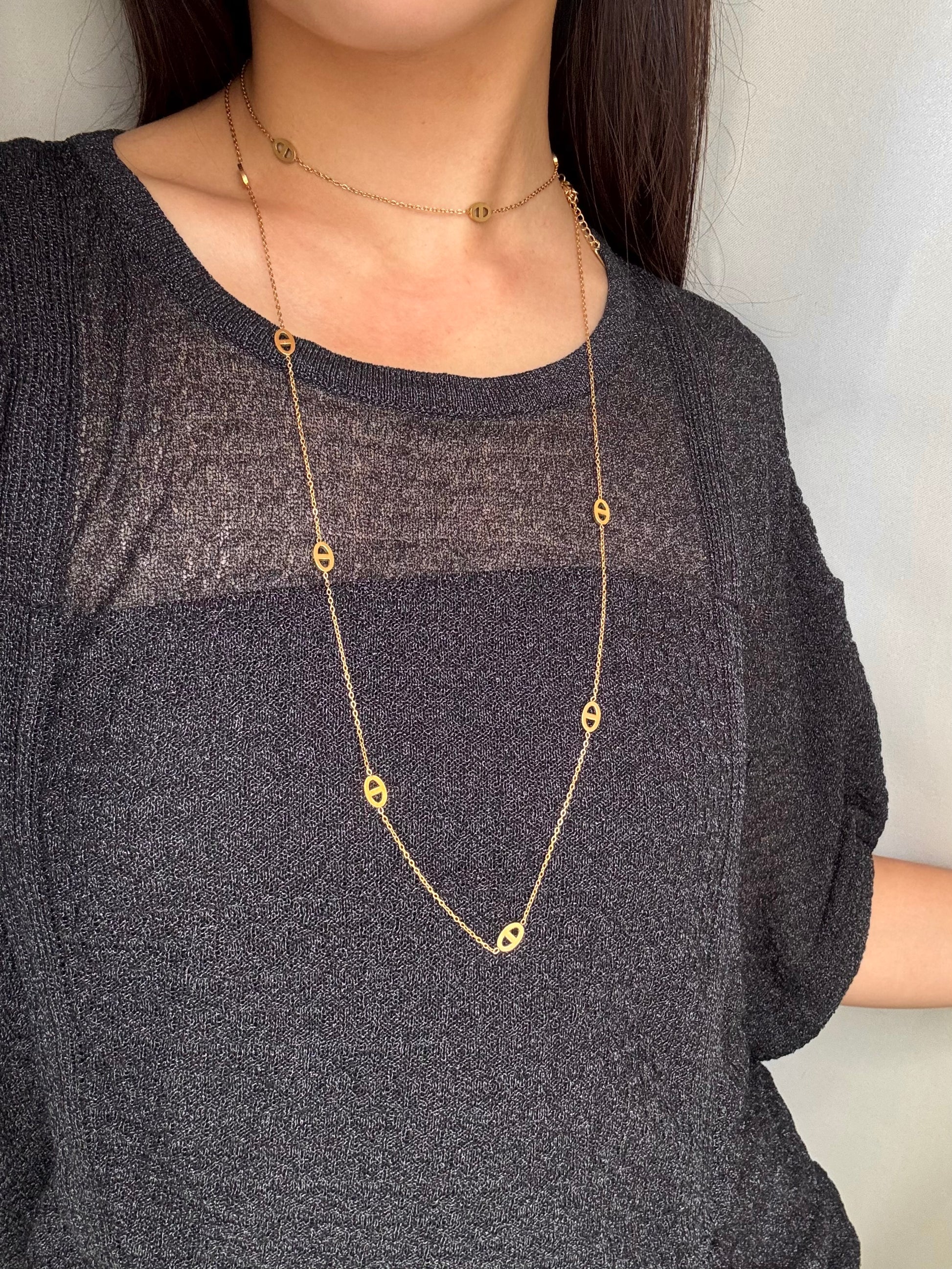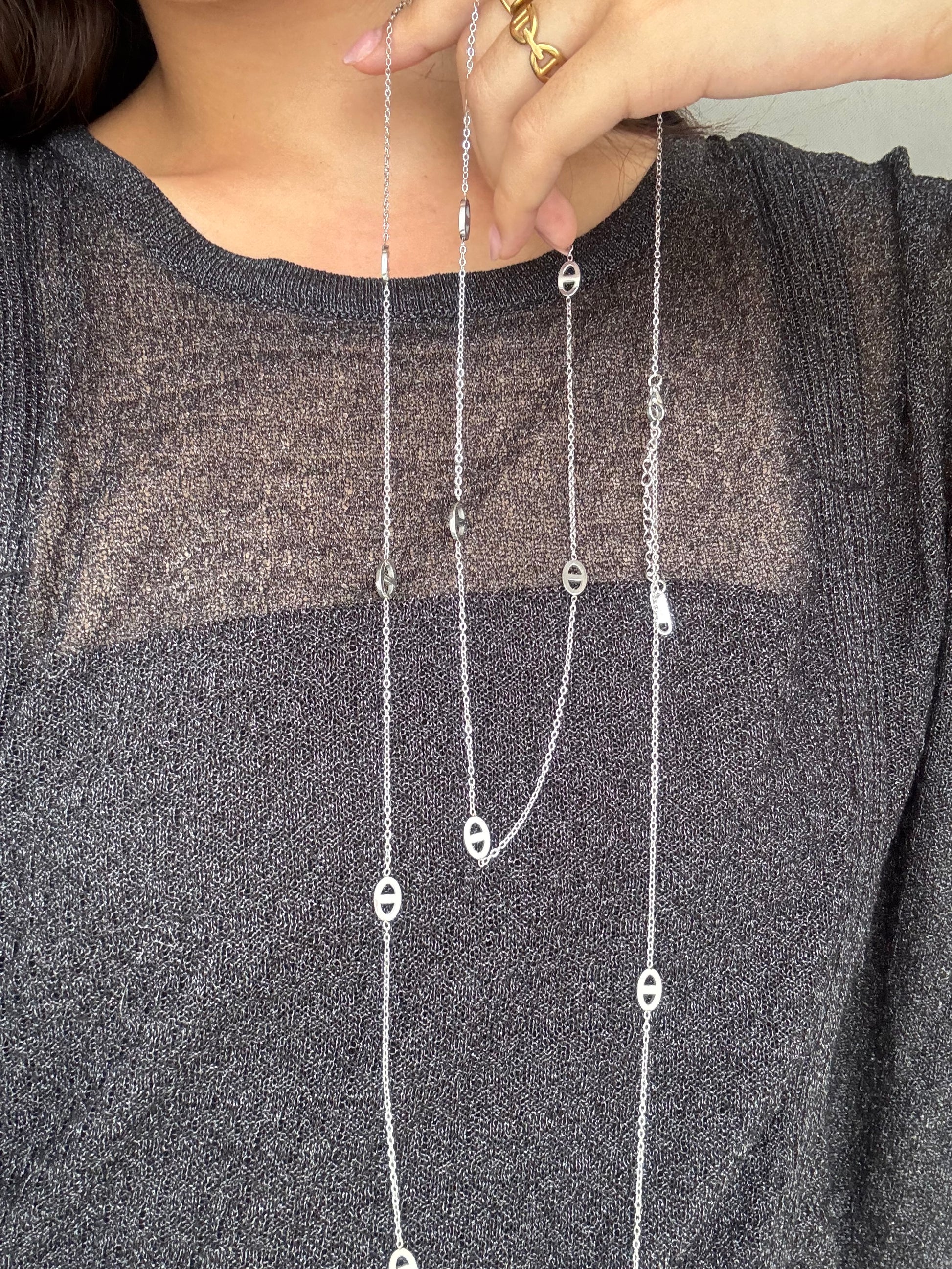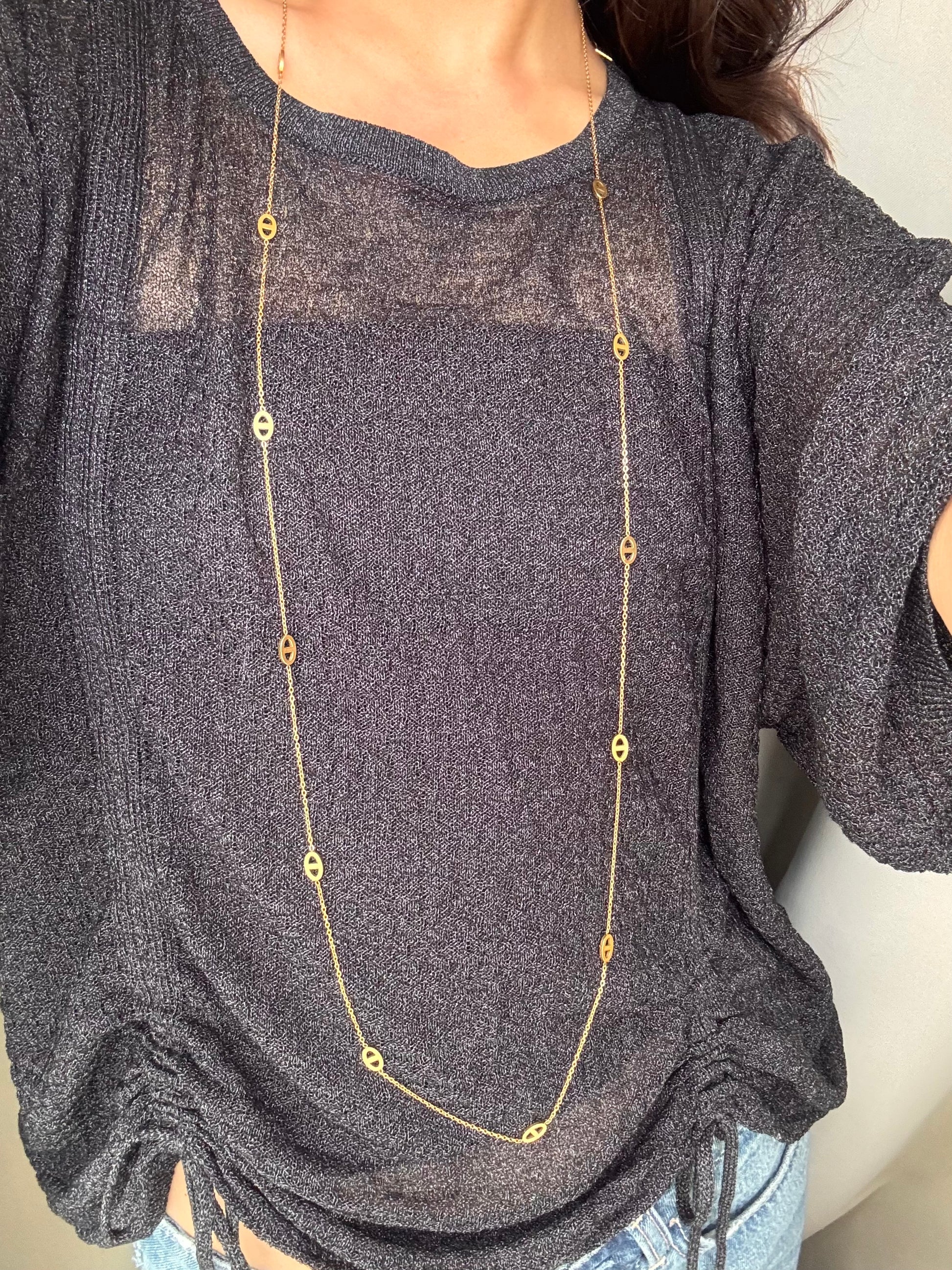 Mots clés : sautoir, doré, argenté, grain de café, long collier, acier inoxydable